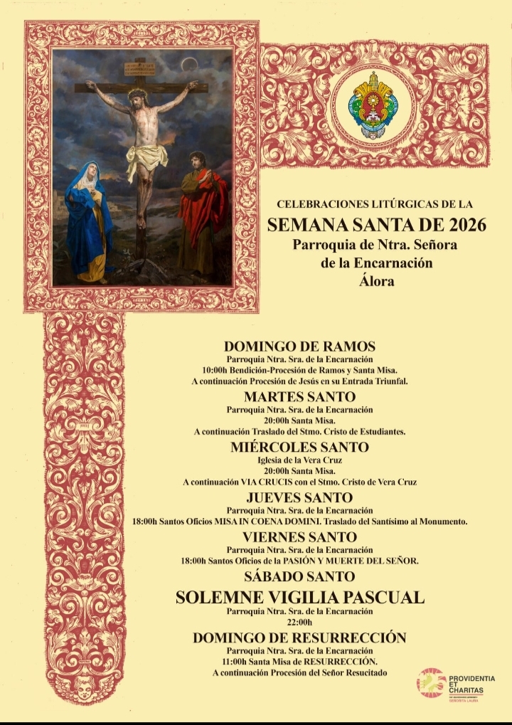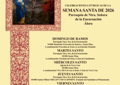 Cuadro con los horarios de las Celebraciones Litúrgicas del a Semana Santa 2026 Álora