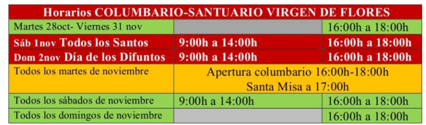 HORARIOS COLUMBARIO-SANTUARIO VIRGEN DE FLORES NOVIEMBRE