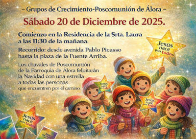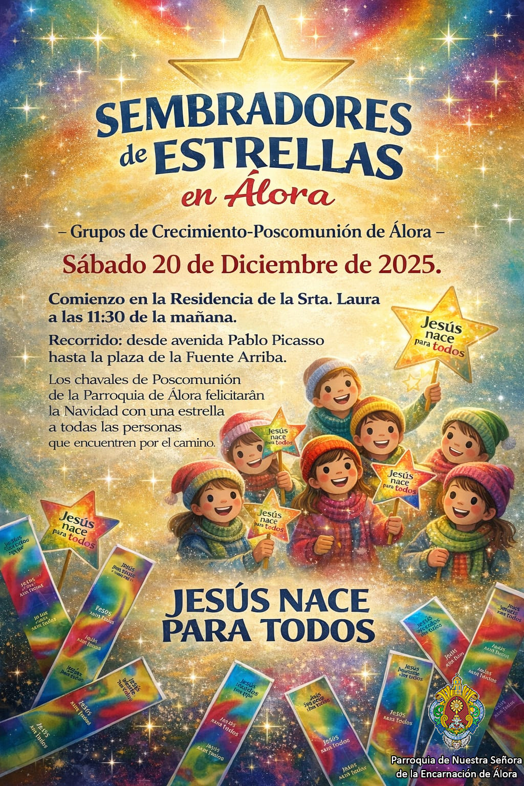 Los Grupos de Crecimiento-Poscomunión harán un recorrido por las calles de Álora felicitando las Navidades entregando una Estrella a todas las personas que encuentren por su camino